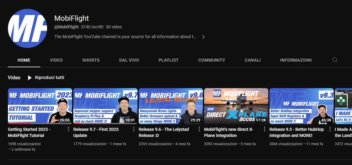Anche il canale Youtube ufficiale del progetto è una grande fonte di informazioni e supporto: https://www.youtube.com/@MobiFlight