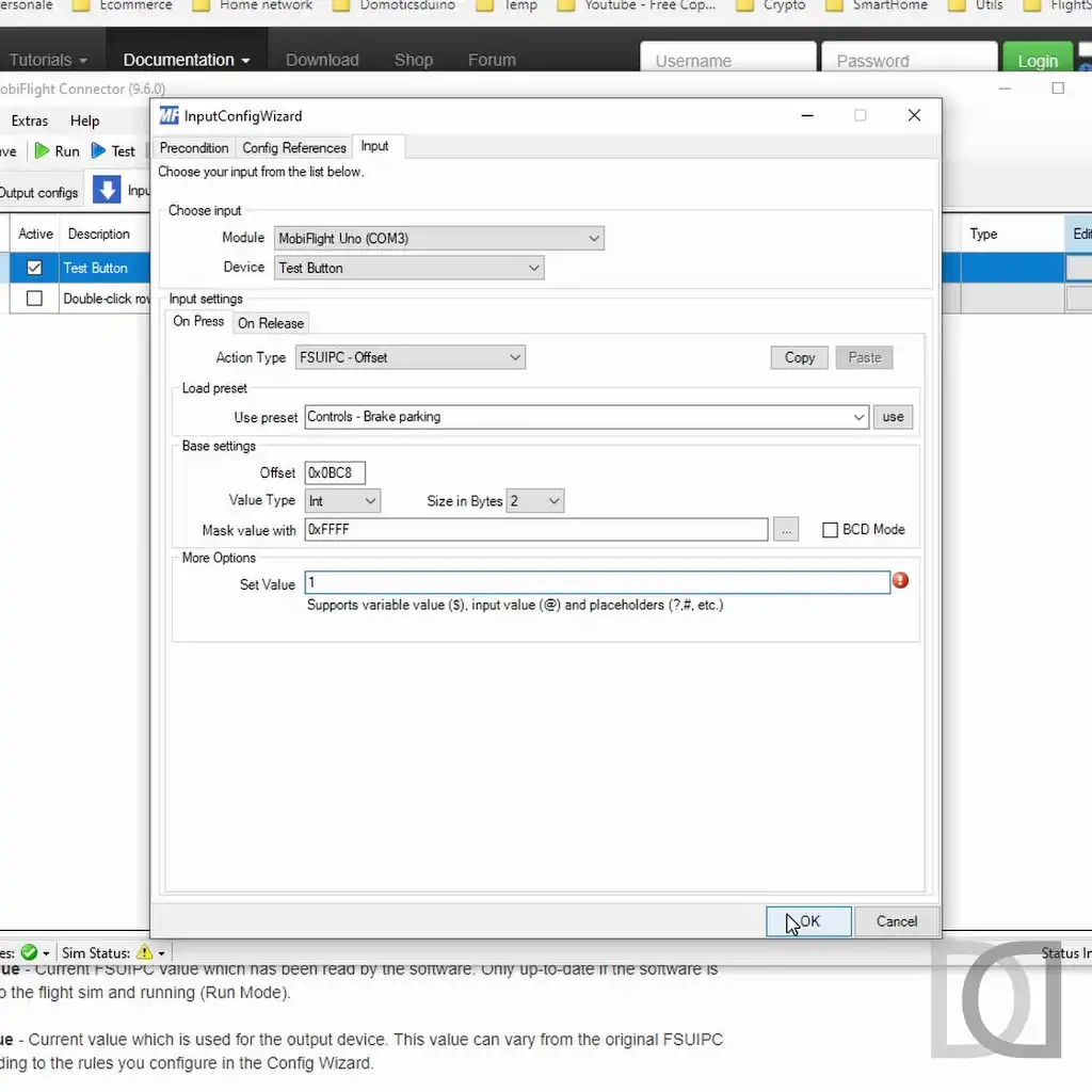 A questo punto siamo pronti a verificare il funzionamento utilizzando la funzione di TEST, che MOBIFLIGHT ci mette a disposizione, senza la necessità di dover per forza avere il simulatore acceso.