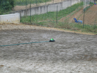 Grazie all'aiuto di nonni e genitori, riusciamo a preparare in maniera "discreta" il terreno per la semina. Quindi...giù mezza scatola di semi sparsi per tutta la superficie.