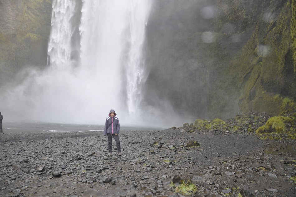Riprendiamo la marcia e dopo una mezz'oretta raggiungiamo il parcheggio della cascata Skogafoss.