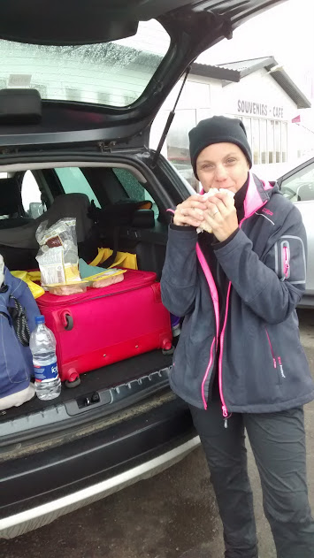 Tornati al parcheggio, prima di riprendere il viaggio, ci fermiamo al bar a riscaldarci un pochino...