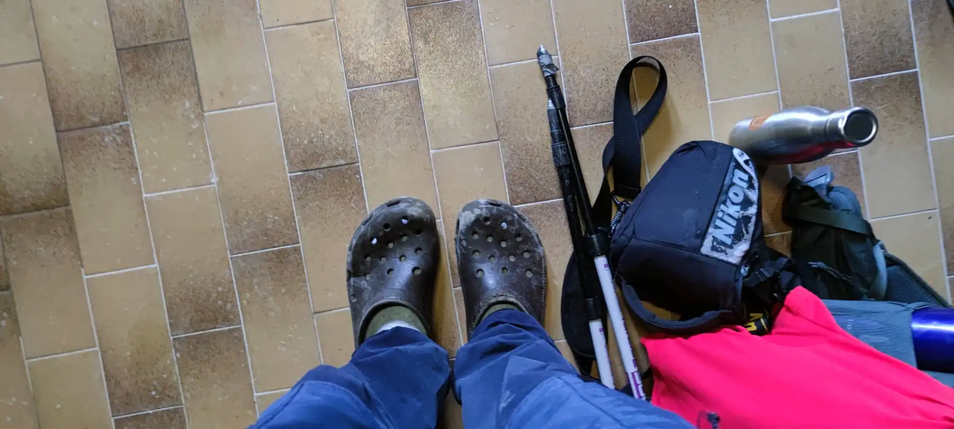 Eccoci finalmente di nuovo al rifugio, giusto in tempo per infilarci le ciabatte e prendere possesso dei nostri letti.